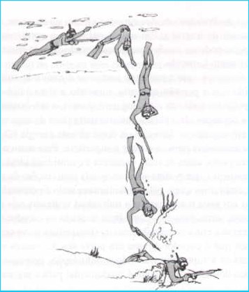 Você flutuando com o corpo voltado para baixo, curve o abdome em 90º graus, feito isso rapidamente estique as pernas para cima de forma que você ficara na vertical. Fazendo isso você vai afundar. Lembre-se de não ir tão ir tão fundo pois você precisa voltar para a superfície para respirar. A cada metro ou quando sentir o desconforto nos ouvidos você precisa equalizar.