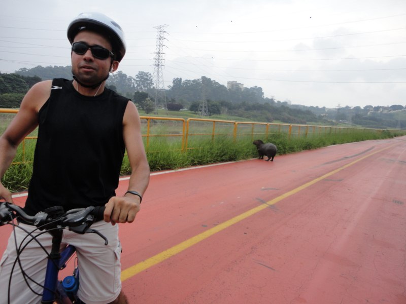 Durante o percurso é comum ver capivaras cruzando a pista e muitas aves.