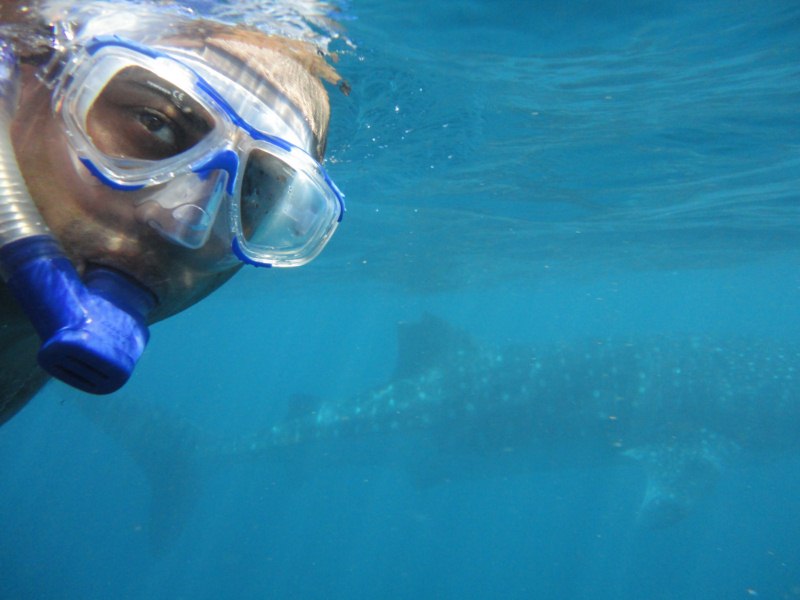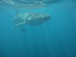 Nas ferias de abril 2011, fui para Austrália e como era temporada de tubarão baleia quis nadar com eles.