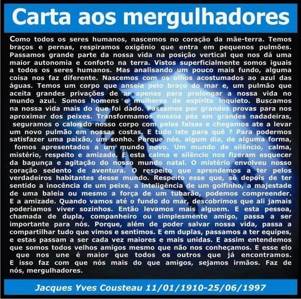 Esta entrada foi publicada em Cursos Dive, Mergulho e marcada com a tag jacques Cousteau, Mergulho. Adicione o link permanente aos seus favoritos.