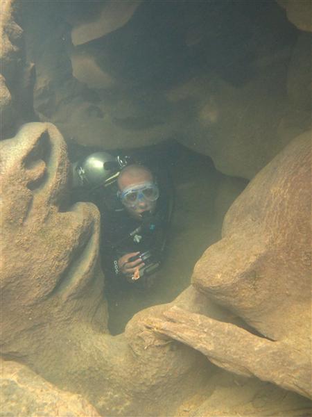 Nessa região não foi autorizado o mergulho em caverna, e, além disso, o custo para conseguir as autorizações acaba sendo inviável.
