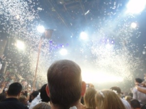 Uma coisa interessante é que de tempos em tempos estoura uns confetes e clareando todo o salão.