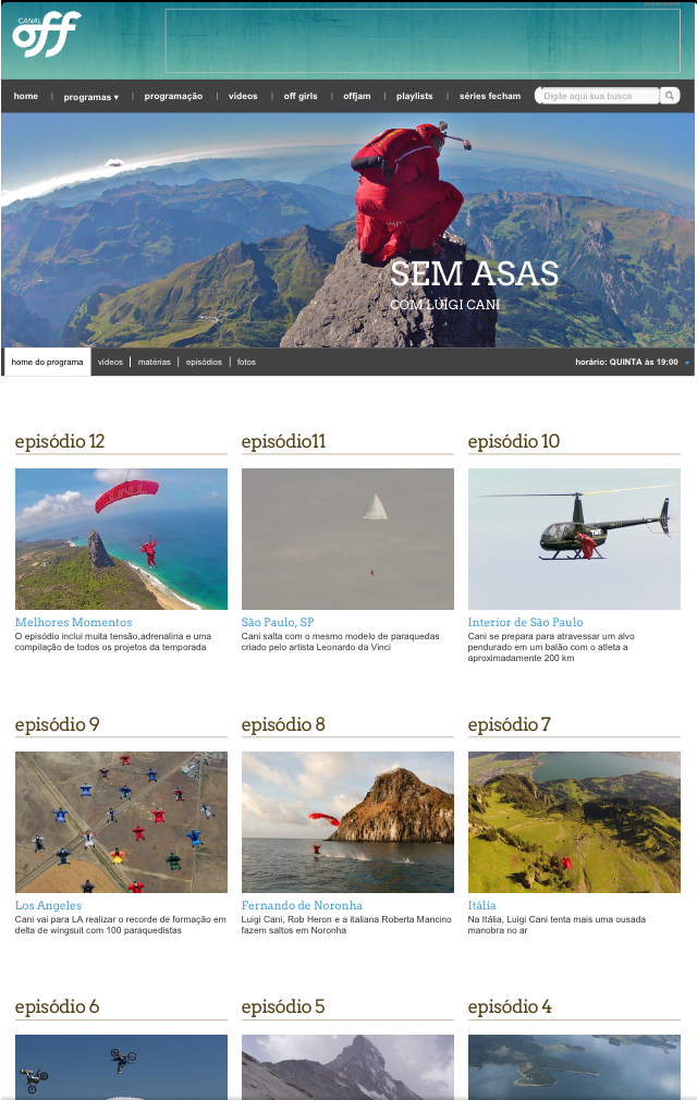 Como o próprio nome sugere, a série mostra os melhores lugares nacionais para a prática de determinadas modalidades de ação. Do Kitesurfe, em Cumbuco, ao Parkour, no centro … horário: SEGUNDA às 19:00