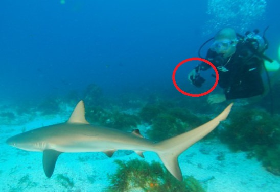 Um outro acessório interessante para quem mergulha é o protetor vermelho para fotografia onde o fundo está muito azul. Esse recurso você pode colocá-lo e remover facilmente e ajuda em ambientes sem muita iluminação reduzindo um pouco a coloração azul.